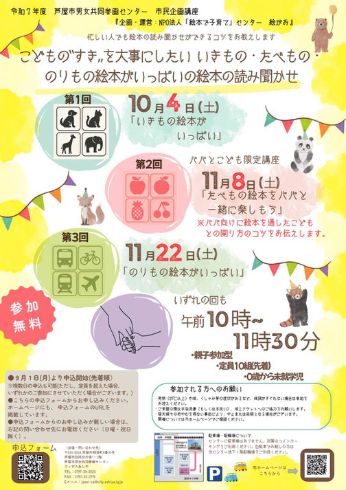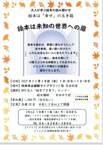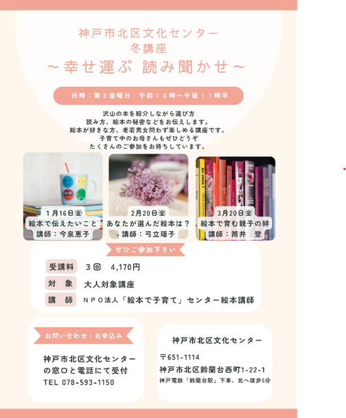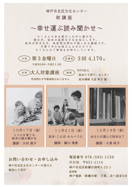 保育園・幼稚園・学校(小・中・高など)の講演会や職員研修、 自治体の子育て支援講座、育児サークル学習会などでも好評の絵本講座、講演です。