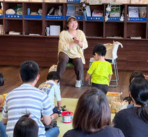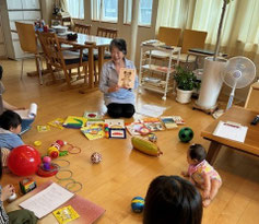 子どもたちの笑い声が、たくさん聞こえる楽しい回でした。親子で、じーっと絵本を見て触れあっている姿がとても幸せそうでした。会の後、親子でも絵本を広げて楽しんでいて、より絵本が好きになったと思います。