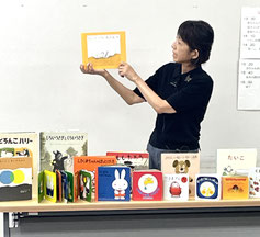 最初ザワザワしていた生徒たちが、読み聞かせが始まると絵本をしっかり聞いていて、絵本の引き付ける力を感じました。読み聞かせる時の間の取り方や語気など、生徒たちがこの経験を実習につなげてくれるものと思います。
